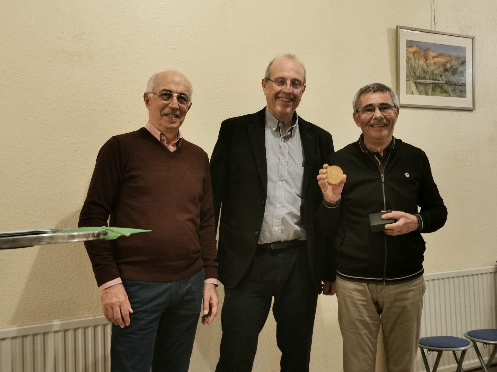 Le Président du Bridge Club Evasion, Jean-Luc Greco est revenu sur les points forts de l'année 2025, la forte croissance du nombre d'adhérents (qui fait de notre club le 4ème du comité), le dynamisme de notre école de bridge avec de nombreux cours adaptés à tous les niveaux. Ce fut aussi l'occasion de mettre en lumière l'implication de notre club dans le bridge scolaire et les brillants résultats obtenus par l'équipe des bénévoles du club sous la houlette de Jean-Pierre Delichère. Le président Alain Kahn a remis à Jean-Pierre Delichère et son équipe la médaille du Comité pour leur implication dans le bridge scolaire depuis de nombreuses années.